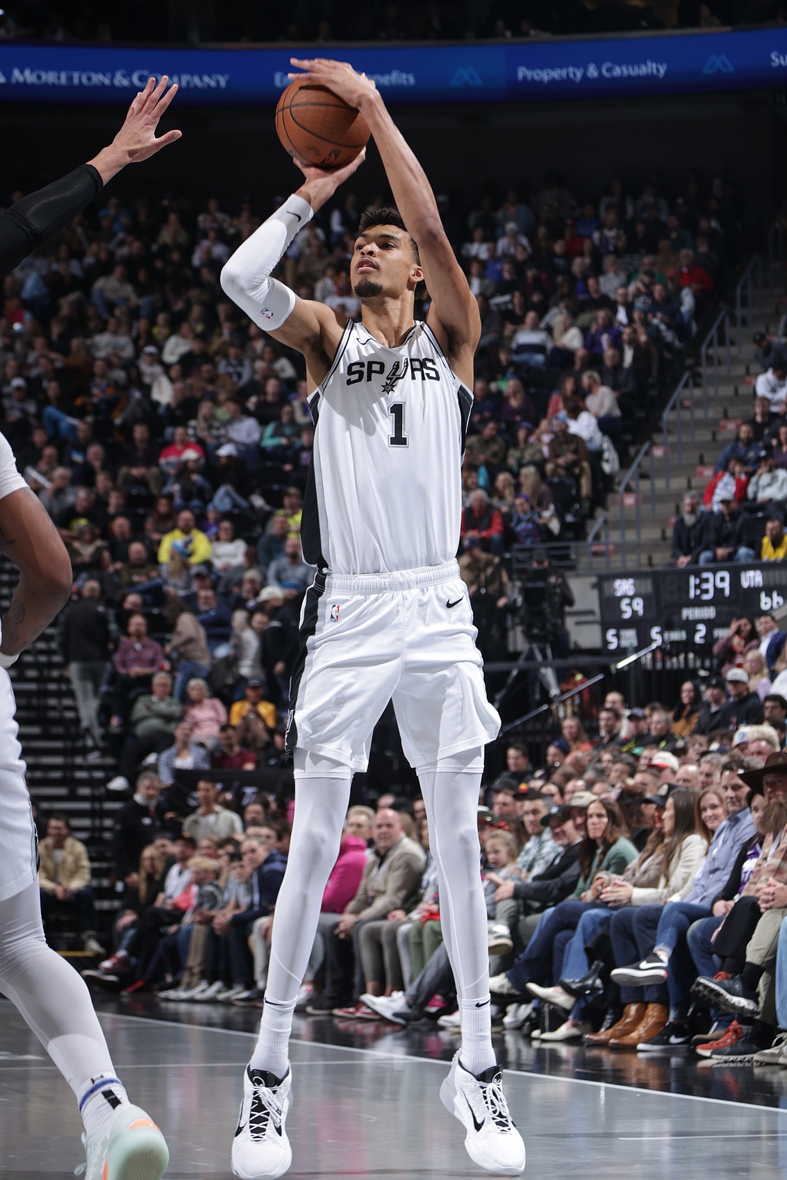 今年,文班亞馬在進攻端的進步顯而易見。文班亞馬的投籃效率正在提高,他的場均得分現(xiàn)在剛剛超過24分,比他的新秀賽季提高了3分。文班亞馬最近成為了單場比賽得到50分第四年輕的球員。