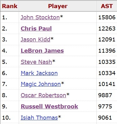 如今,斯托克頓的助攻總數(shù)仍然領(lǐng)先第二名的保羅3500多次。