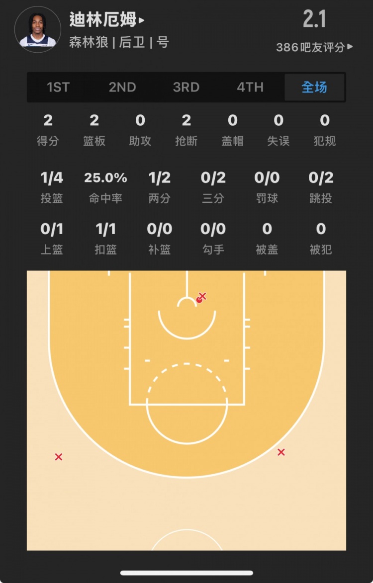 森林狼8號秀 羅布-迪林厄姆 登場8.1分鐘