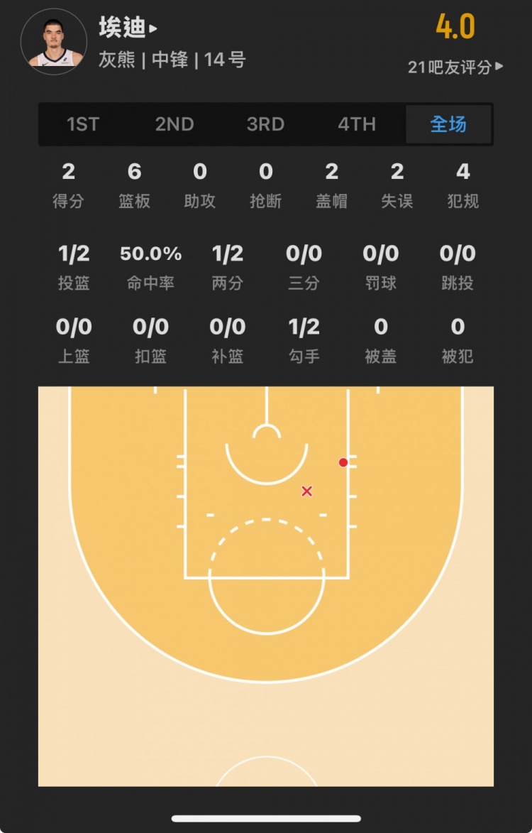 灰熊9號秀 扎克-埃迪 登場12.2分鐘