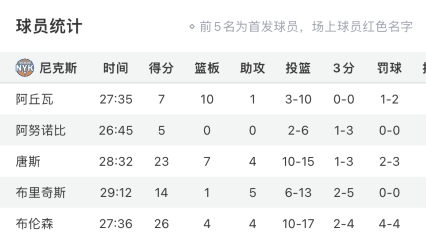 三節(jié)結(jié)束時,尼克斯落后31分,末節(jié)錫伯杜沒再讓先發(fā)球員登場,首發(fā)五虎的出場時間都在20+。