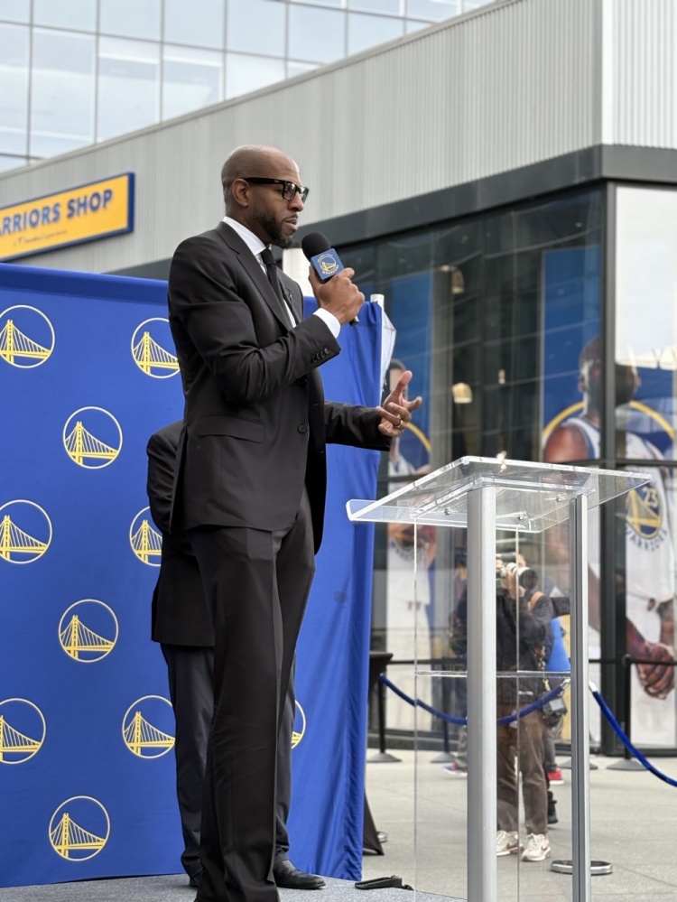 我還想歡迎所有曾經(jīng)效力于勇士的優(yōu)秀球員、NBA球員、2015年冠軍隊的球員,以及安德烈的所有朋友。今天將是非常美好的一天,真的非常美好。