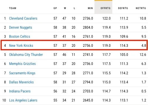 但總覺得,如果要選一支球隊站上頂點,那尼克斯不會得到什么票數。因為他們在高端局的表現實在難以恭維......