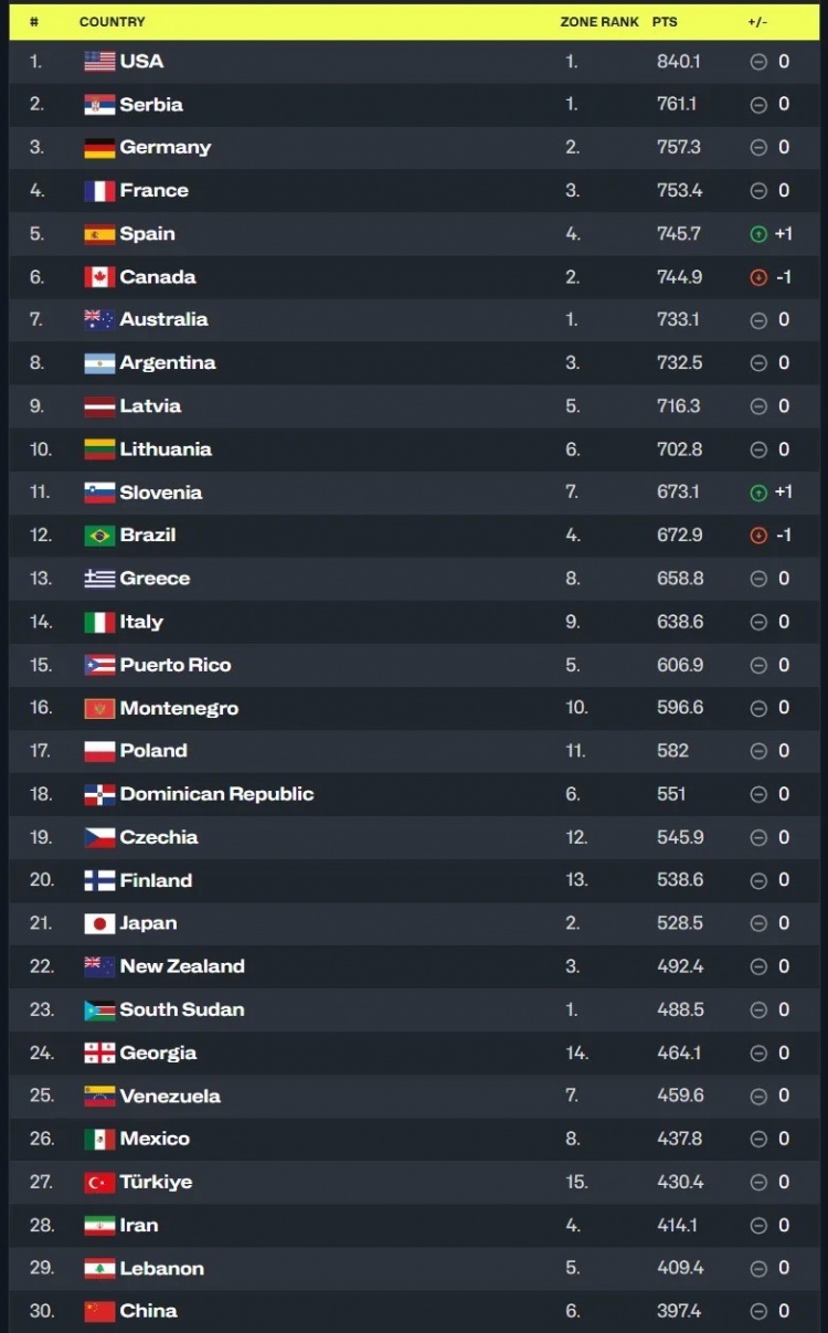 與此同時(shí),中國(guó)男籃過(guò)去取得的輝煌戰(zhàn)績(jī)開始不太受到認(rèn)可了,更看重當(dāng)前水平的新排名,讓男籃八年前的成績(jī)被大打折扣,男籃也成為彼時(shí)跌幅最大的球隊(duì)之一。但比中國(guó)慘的球隊(duì)自然還有:“星月軍團(tuán)”土耳其,發(fā)現(xiàn)自己在2010年世錦賽上取得的亞軍不管用了,排名從第21名跌倒第52;2010年世錦賽上中國(guó)隊(duì)的好兄弟“非洲大象”科特迪瓦,同樣因?yàn)椤安凰歼M(jìn)取”,排名被往后挪了32位。
