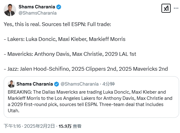 這是真的!Shams再次確認湖人和獨行俠交易 并補充了細節(jié)