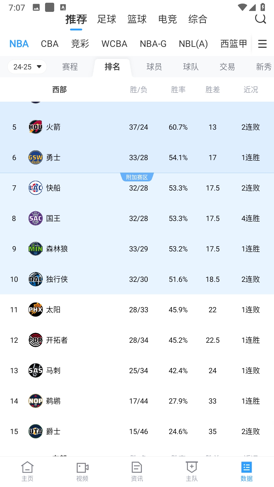 獨(dú)行俠目前32勝30負(fù)排在西部第十位,附加賽名額岌岌可危,吧友覺得在附加賽區(qū)外的哪些球隊還有可能躋身季后賽?