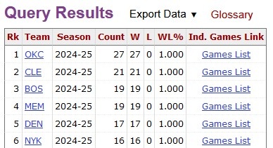 本賽季凈勝15+場(chǎng)次榜:雷霆27場(chǎng)第1 騎士21場(chǎng)第2 綠軍20場(chǎng)第3