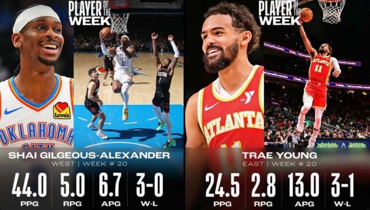 周最佳:亞歷山大場均44分5板6.7助 特雷-楊場均24.5分2.8板13助
