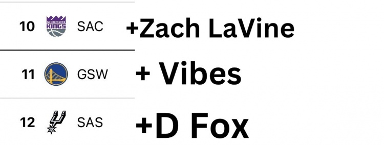 在曬出的圖片中,排西部第10的國(guó)王得到拉文,第12的馬刺得到福克斯,而第11的勇士則只得到了空氣(意指精神勝利法)。