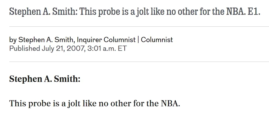 在《一樁事先張揚的謀殺案》中,相信主角清白的法官,說出了這么一句話:「給我一個偏見,我將撬動地球」。而史蒂芬·A·史密斯的職業(yè)生涯,某種意義上可以概括為:給我一個詹姆斯,我將撬動體育圈最多的流量。