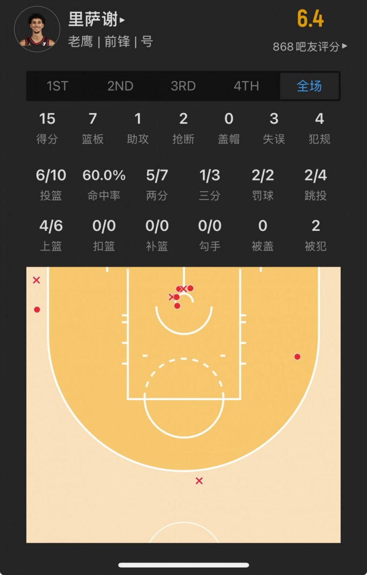 老鷹狀元秀 扎卡里-里薩謝 登場36.5分鐘
