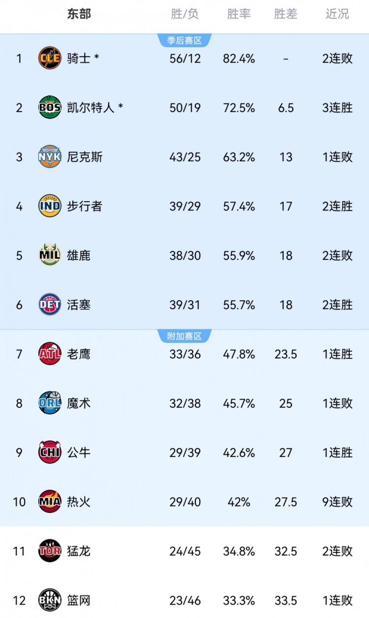 至此,熱火遭遇了9連敗。而他們排名仍在東部附加賽區(qū),仍領(lǐng)先第11的猛龍5個(gè)勝場。