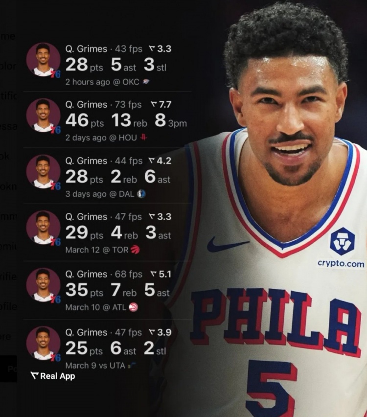 一邊是兩大頂薪報銷,一邊是清倉拋售當(dāng)家球星,正當(dāng)專家球迷們糾結(jié)年度最二管理層應(yīng)該頒給76人還是獨行俠的時候,很快一個球員用一波個人秀宣告了比賽結(jié)束:穿上費城球衣的昆廷-格萊姆斯在18場比賽里場均轟下21.8分,其中包括一場對火箭的46分,一場對勇士的44分,還有一場重返達拉斯干翻全場的28分帶走勝利,現(xiàn)實上演了一出爽文劇情。