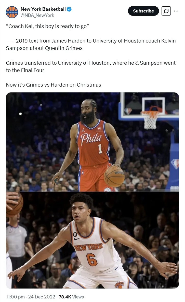 在休斯敦期間,格萊姆斯的擋拆防守和后場籃板能力大大提高了,這兩項后來成為了他在NBA的立足之本。2021年選秀大會,他在首輪第25順位被尼克斯摘走——對于曾經(jīng)被看好拿下前五順位的天才來說,這個結(jié)果多少有些讓人失望,但格萊姆斯心態(tài)很好,這得益于他在學(xué)生時代一直養(yǎng)成的性格,格萊姆斯堅信,就算兩年前他以高順位進入NBA,該學(xué)的東西還是要從頭學(xué)起,從一個較低的起點出發(fā)不一定是壞事。