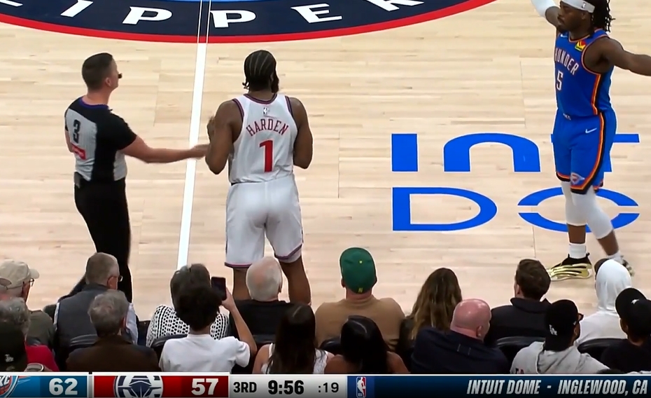 被多特貼身頂翻!哈登捂著自己的大腿痛苦倒地!好在無礙繼續(xù)比賽