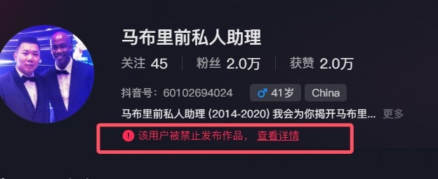 自稱(chēng)馬布里前助理抖音賬號(hào)被禁言 昨天發(fā)布內(nèi)容希望老馬好好做人