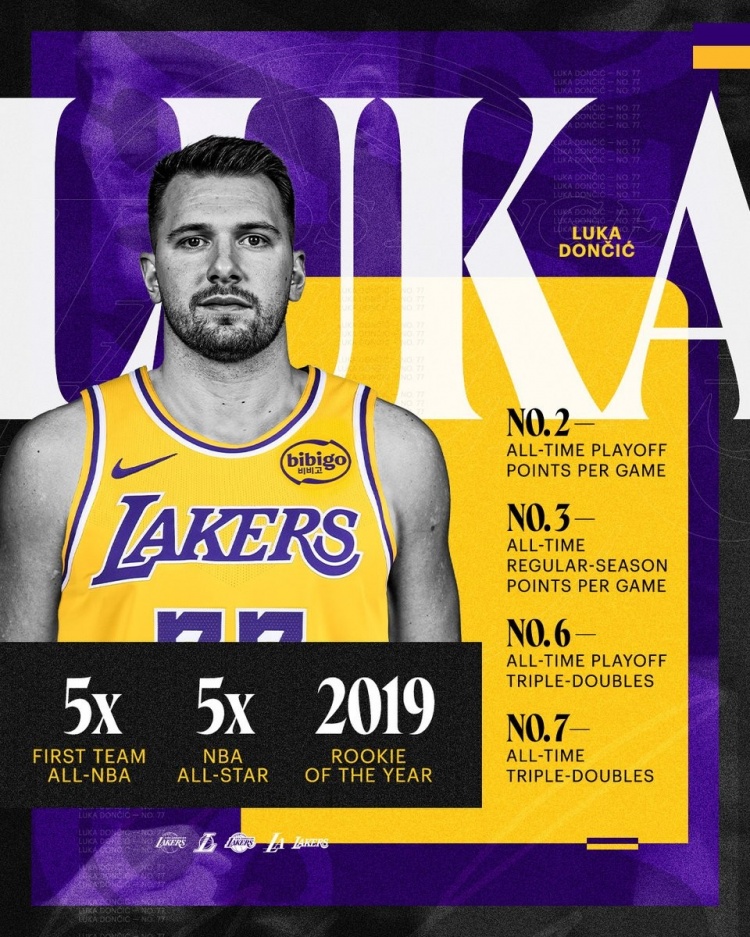 25歲!湖人曬東契奇履歷:5次一陣&5次全明星 季后賽場均30.9分