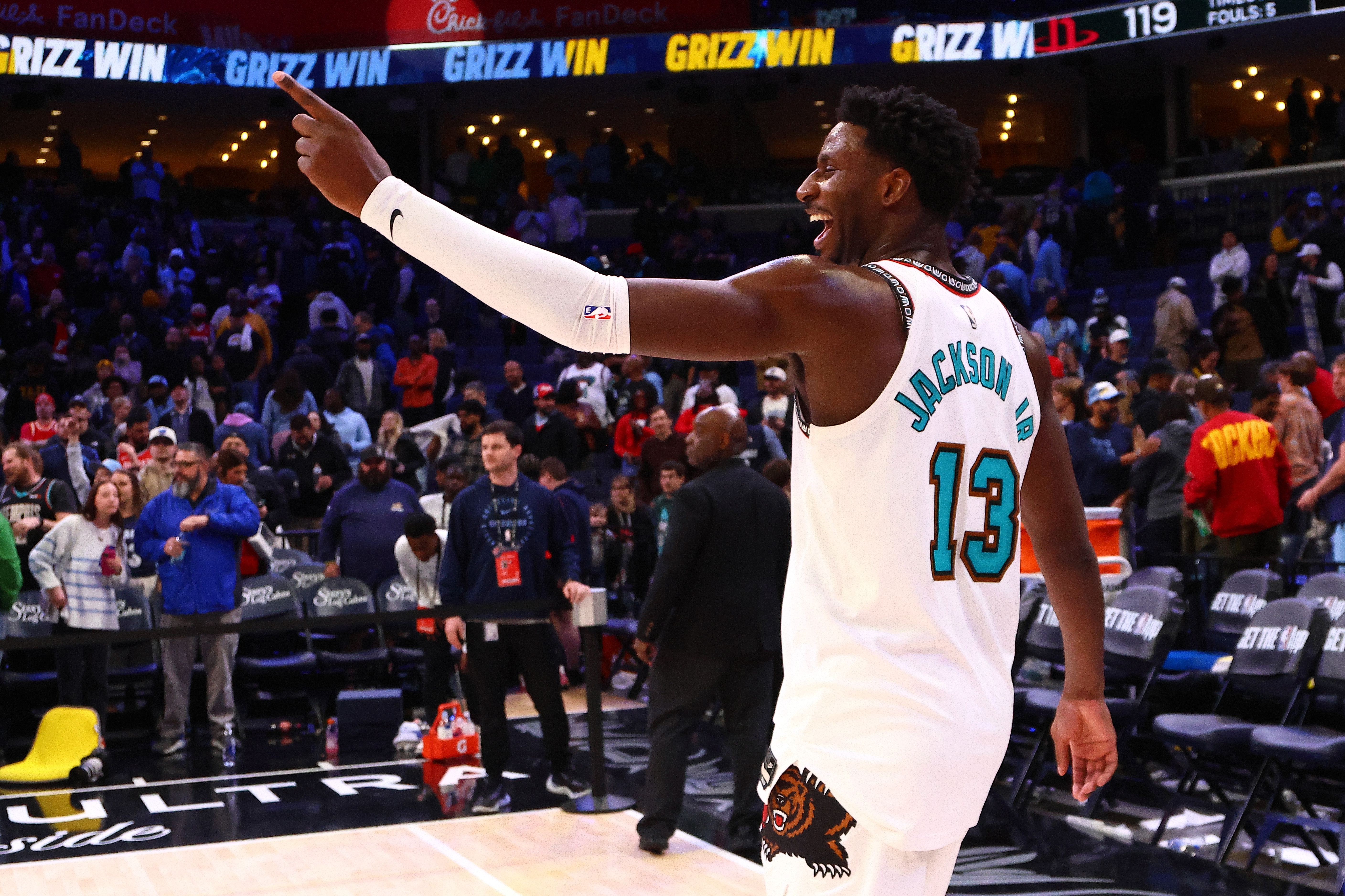 灰熊最近狀態(tài)不錯取得3連勝,上場比賽他們128-109輕松拿下馬刺,賈倫-杰克遜還是具備想相當(dāng)豐富的進攻能力,這場比賽他面對文班亞馬鎮(zhèn)守的內(nèi)線絲毫不怵,他砍下全場最高的31分,并且還有3次蓋帽。莫蘭特也是打得游刃有余,拿到25分11助攻的兩雙,埃迪也拿到16分14籃板3搶斷,作為新秀來說打得相當(dāng)不錯,GG-杰克遜替補貢獻27分。