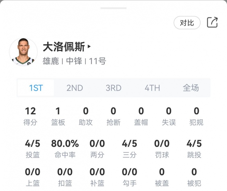 第一節(jié),雄鹿中鋒大洛佩斯手感火熱,半節(jié)的時(shí)間三分5投4中獨(dú)得12分,幫助球隊(duì)占據(jù)主動(dòng)。