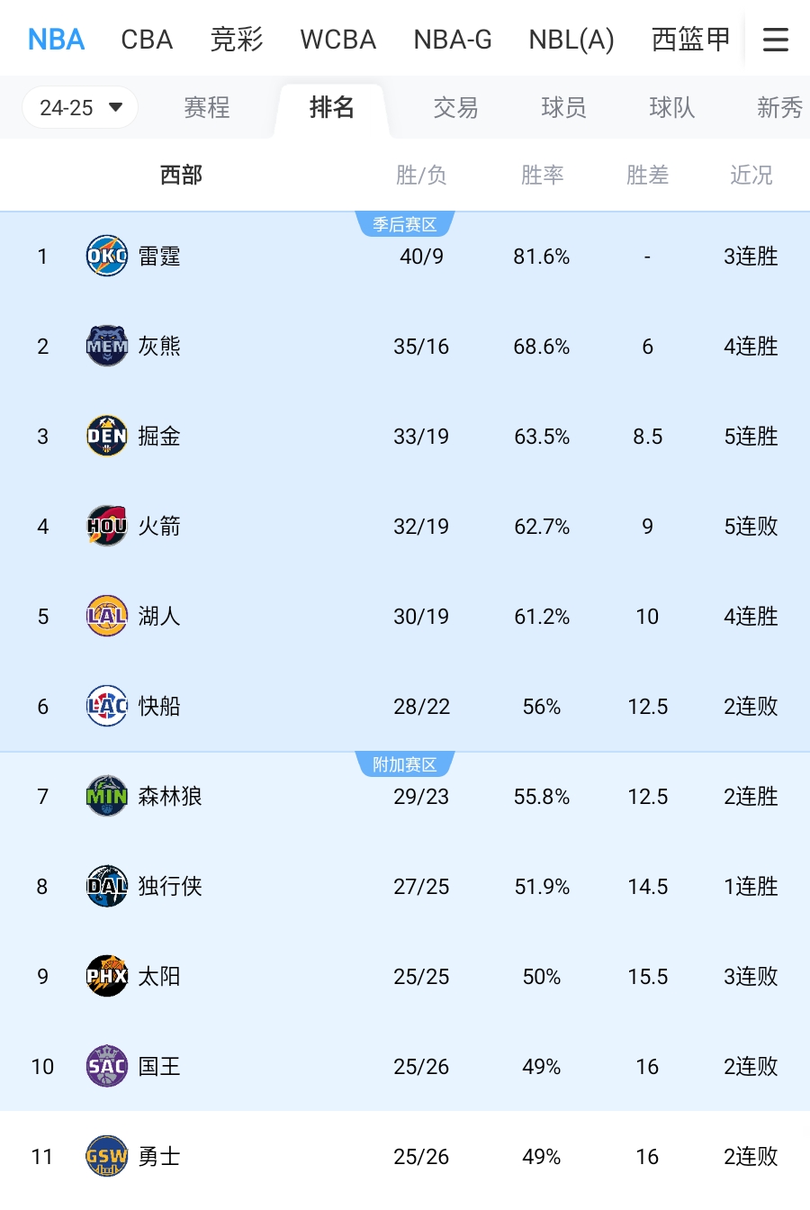 湖人賽季三殺勇士目前30勝19負(fù)仍居西部第五名 距火箭僅差1個(gè)勝場(chǎng)