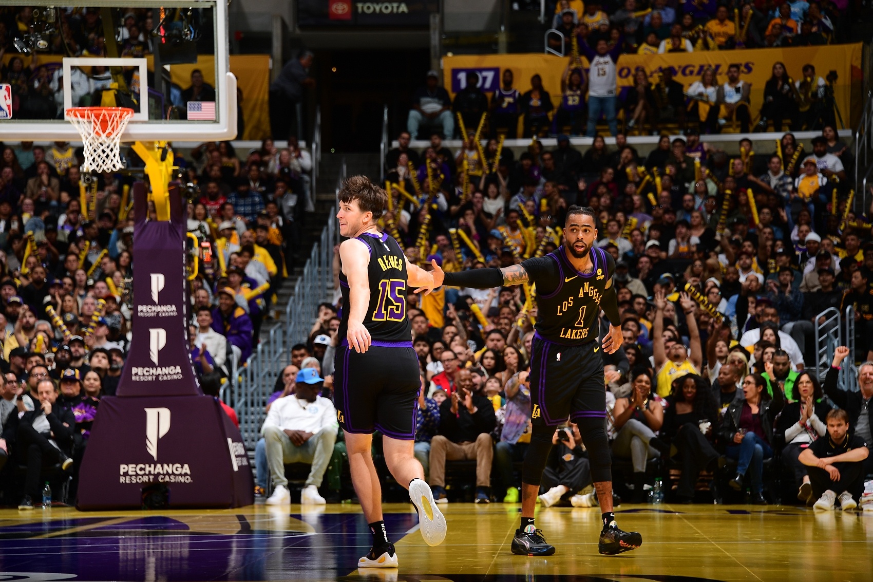 湖人與步行者一戰(zhàn)最后時(shí)刻,奧斯汀-里夫斯在全場(chǎng)湖人球迷“MVP”贊歌聲中兩罰全中,數(shù)據(jù)定格在45分、7籃板、7助攻、3搶斷。自2005年的科比之后,里夫斯是湖人單場(chǎng)砍下至少40分、5籃板、5助攻最年輕的球員。