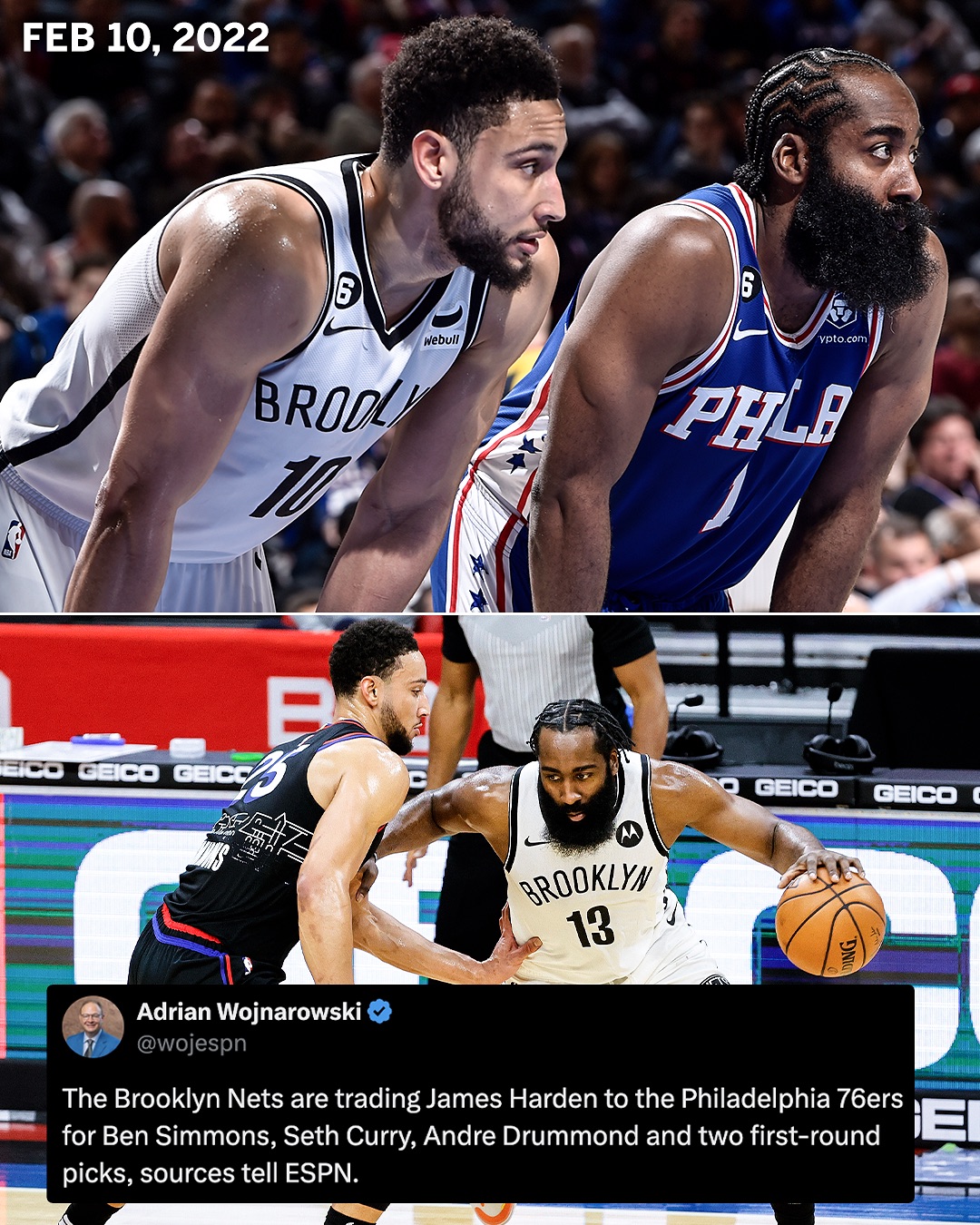 三年過去了!2022年籃網(wǎng)用哈登換了本西 現(xiàn)在兩人在快船當了隊友