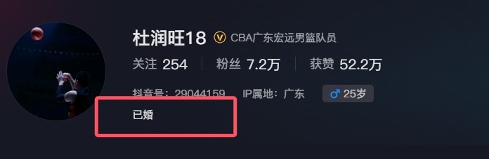 悶聲干大事!杜潤旺社媒簡(jiǎn)介顯示“已婚” 目前正跟隨男籃集訓(xùn)