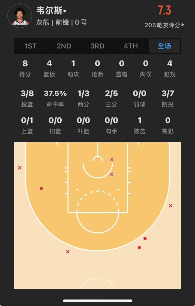 灰熊39號秀 杰倫-韋爾斯 登場19.3分鐘