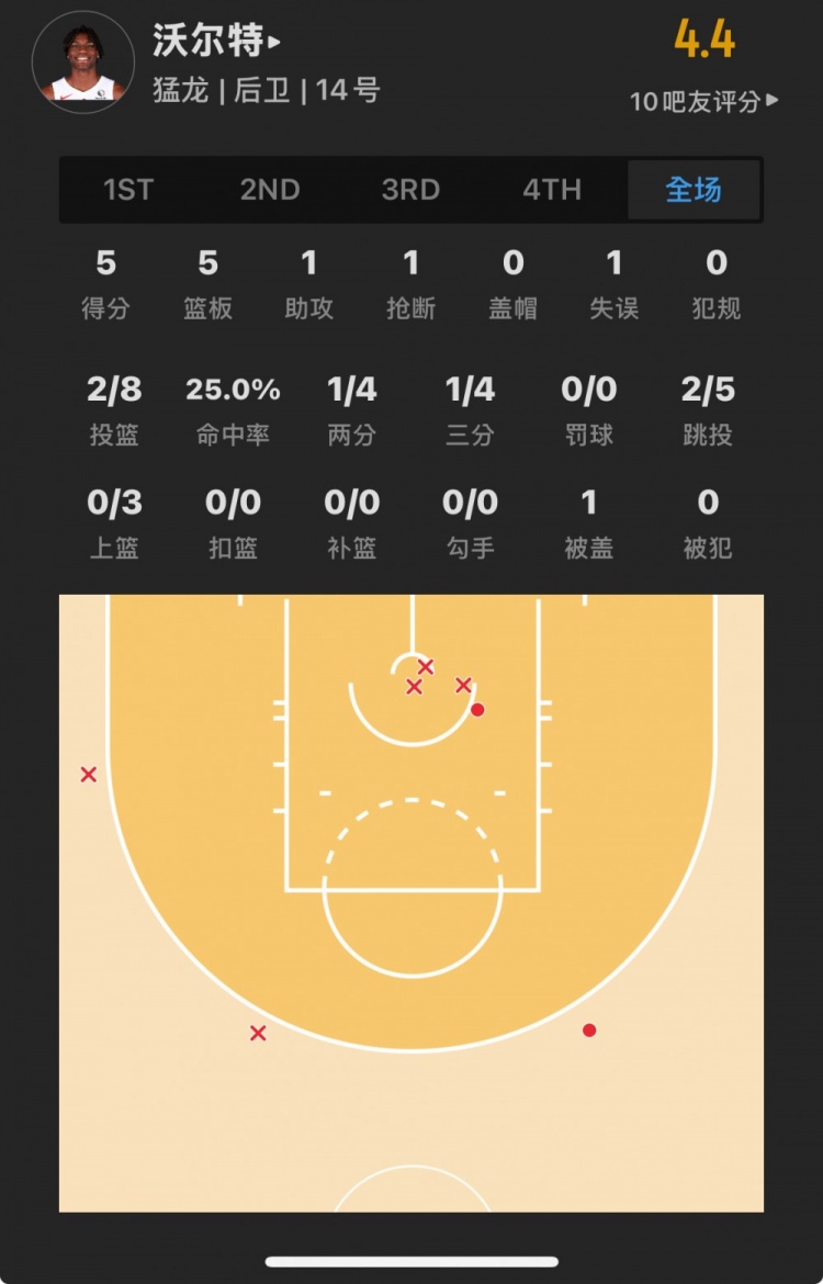 猛龍19號秀 賈科比-沃爾特 登場20.0分鐘