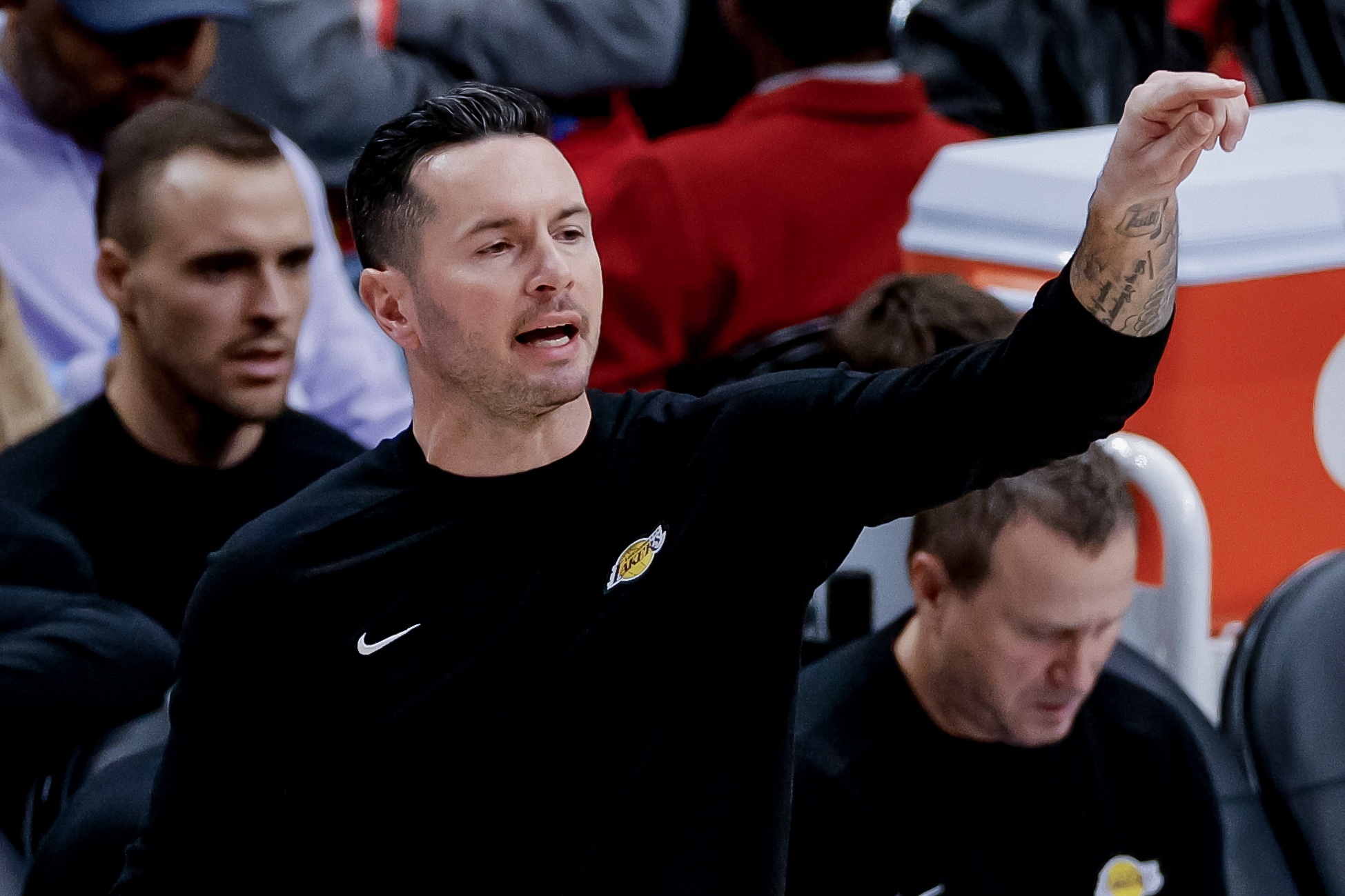 具體的陣容選擇還有待觀察。例如,讓海斯和賈里德-范德比爾特一起上場的決定似乎有點奇怪,因為他們是湖人隊核心輪換陣容中的兩名非射手球員。但這里有一個明確的邏輯。在賽季開始前,雷迪克曾表示——哪怕只是開玩笑——他希望湖人隊每場比賽投50個三分球。很明顯,這并沒有發(fā)生。只有掘金隊、猛龍隊和快船隊比湖人隊投得更少。但在周二對陣爵士隊的比賽中,湖人隊出手了42個三分球,追平了他們本賽季三分球出手次數(shù)第四高的紀錄。