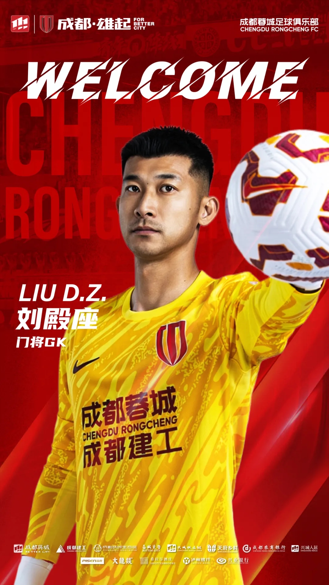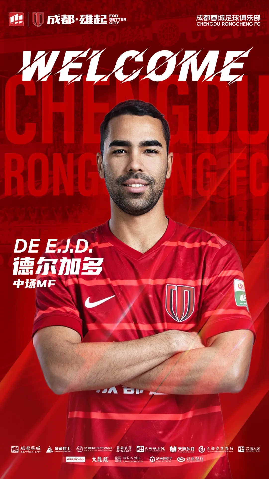 歡迎德?tīng)柤佣鄟?lái)到成都,加入成都蓉城的大家庭。你的到來(lái),將幫助蓉城在新賽季中取得更優(yōu)異的成績(jī)!