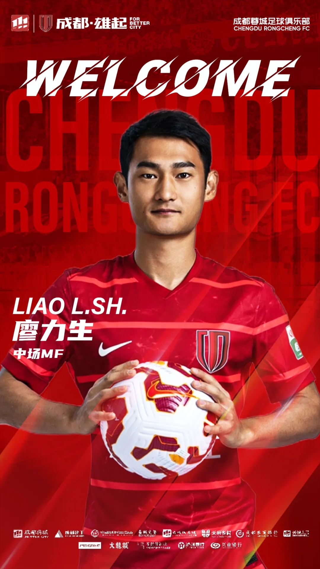 歡迎廖力生來(lái)到成都,加入成都蓉城的大家庭。你的到來(lái),將幫助蓉城在新賽季中取得更優(yōu)異的成績(jī)!