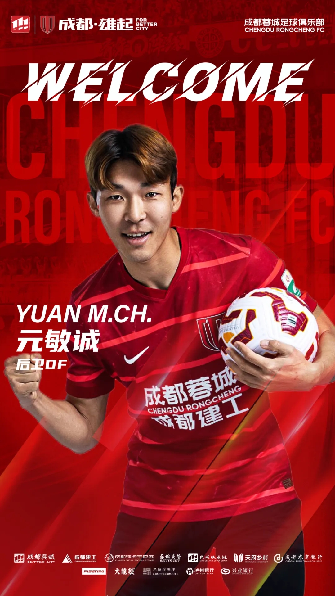 歡迎元敏誠(chéng)來(lái)到成都,加入成都蓉城的大家庭,你的到來(lái)將為隊(duì)伍注入新的活力與力量!