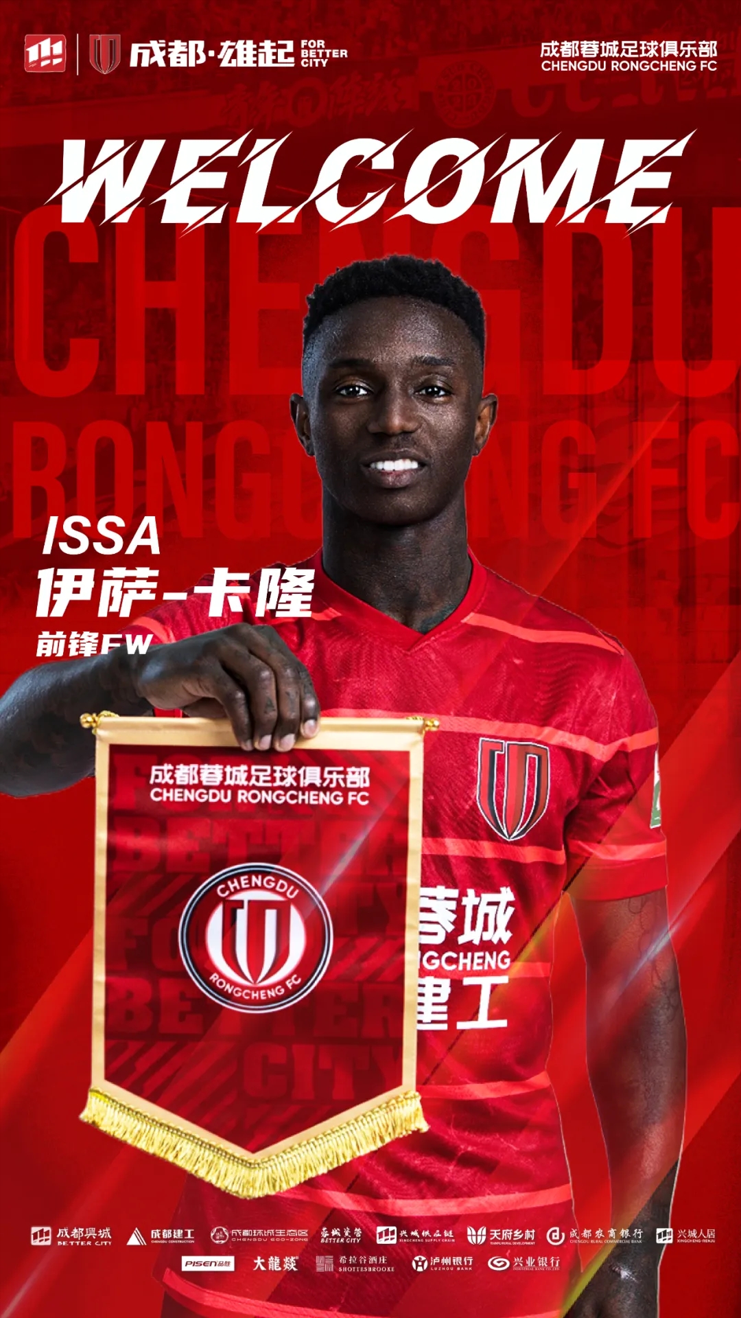 歡迎伊薩·卡隆來(lái)到成都,加入成都蓉城的大家庭。你的到來(lái),將幫助蓉城在新賽季中取得更優(yōu)異的成績(jī)!