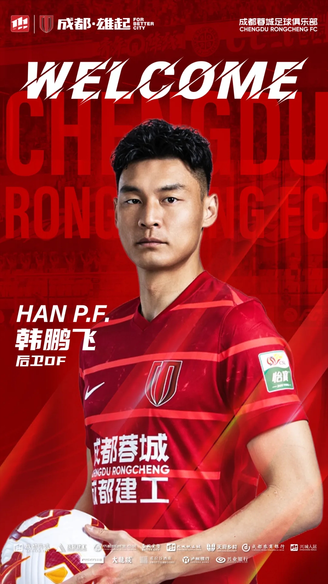 歡迎韓鵬飛來(lái)到成都,加入成都蓉城的大家庭,你的到來(lái)將為隊(duì)伍注入新的活力與力量!
