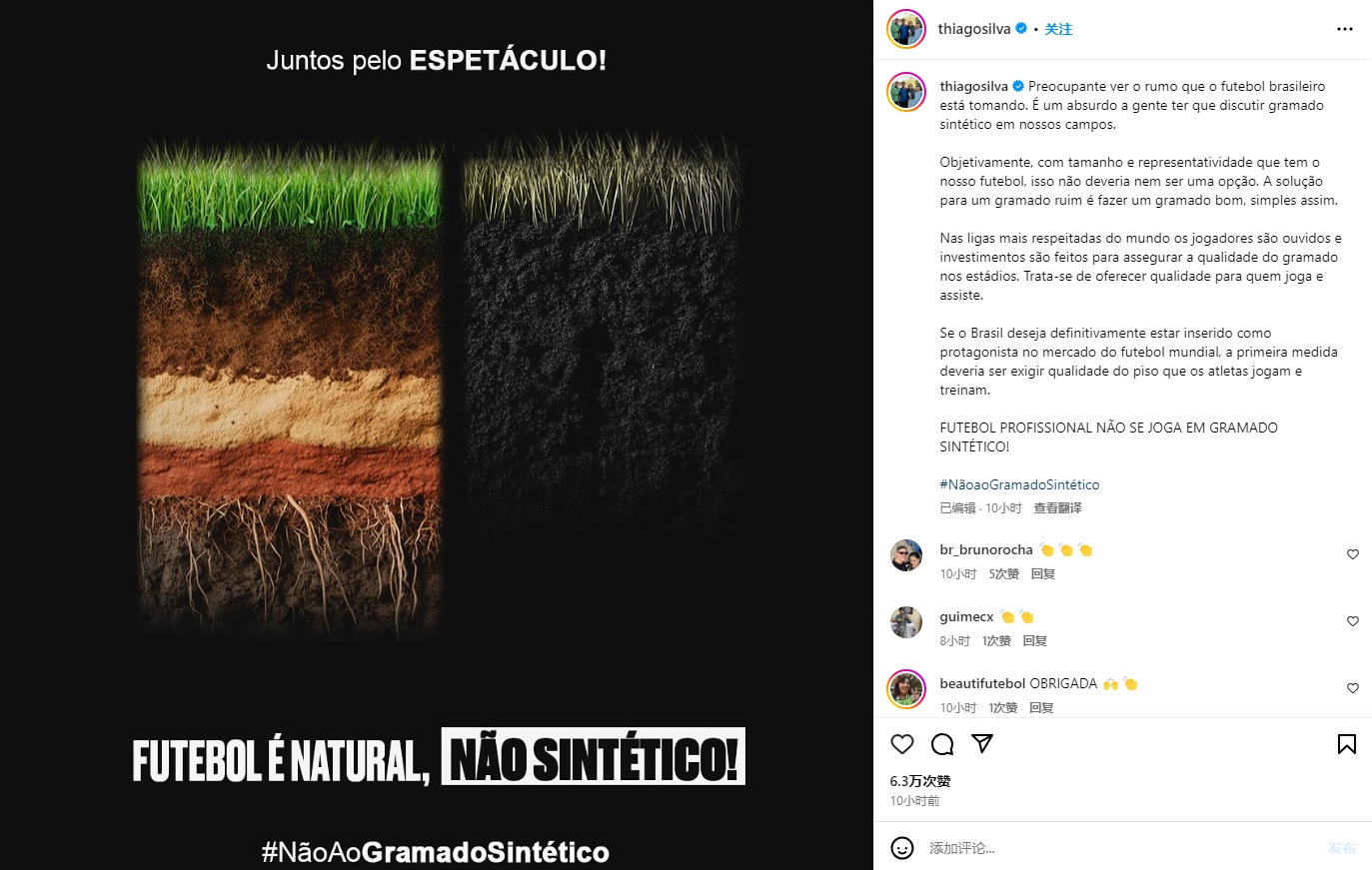 02月19日訊 內馬爾、庫蒂尼奧、蒂亞戈-席爾瓦等人社媒發(fā)布相同的長文,對巴西足球球場使用人工草皮進行批評。