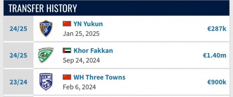 2024年年初,武漢三鎮(zhèn)以90萬歐元的轉(zhuǎn)會費引進(jìn)了佩德羅-恩里克。由于在武漢三鎮(zhèn)表現(xiàn)不俗,2024年夏天,武漢三鎮(zhèn)以140萬歐元的價格將其賣給了阿聯(lián)酋的豪爾費坎。效力豪爾費坎半賽季后,佩德羅-恩里克重返中超聯(lián)賽,以28.7萬歐元的轉(zhuǎn)會費加盟升班馬云南玉昆。短短半個賽季,豪爾費坎在佩德羅-恩里克身上的投資凈虧損超過了百萬歐元。