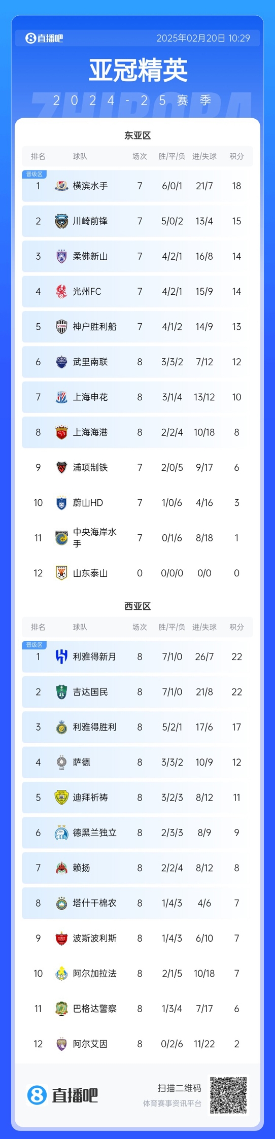 根據(jù)亞足聯(lián)官方積分榜顯示,浦項制鐵原本4-2擊敗泰山的比賽顯示“取消”,球隊積6分排名第9,落后上海海港,無緣淘汰賽。