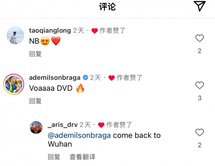 曾經(jīng)在武漢三鎮(zhèn)并肩作戰(zhàn)的陶強龍、埃德米爾森,都留言為戴維森送上了祝福。