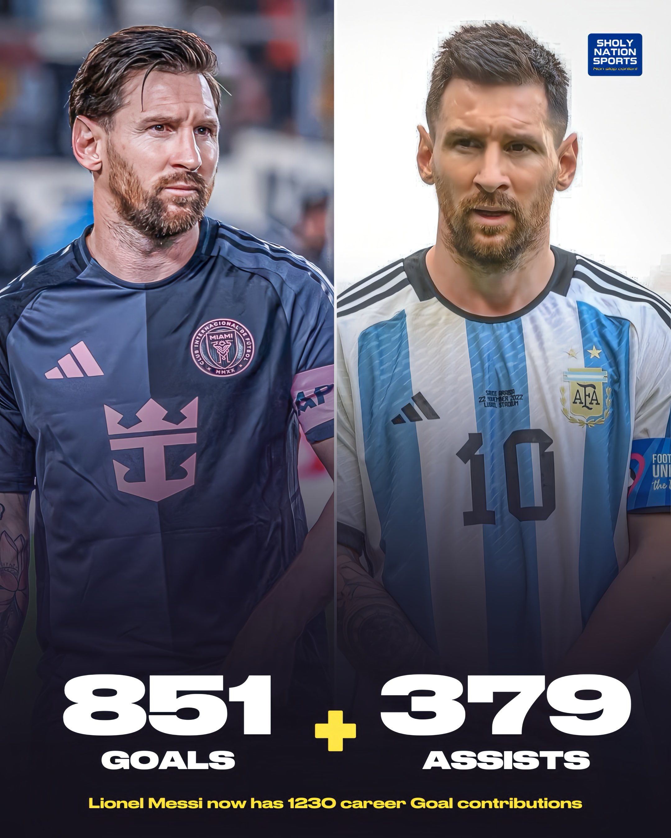 851球379助!37歲梅西目前生涯參與進球數(shù)達1230球!