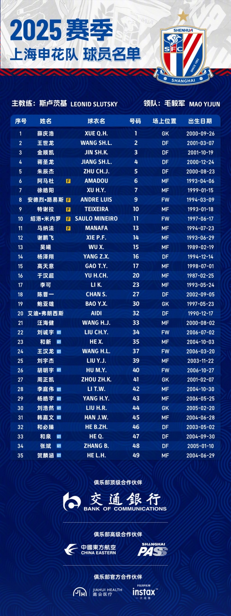 昨天,申花官方公布了2025賽季一線隊名單。跟上個賽季相比,申花新賽季的一線隊年輕球員更多了,有多達(dá)11名U21的年輕球員,所以球隊的平均年齡已經(jīng)下降到25.4歲,成為中超最年輕的球隊。北京國安、武漢三鎮(zhèn)、梅州客家并列第2,平均年齡是26.6歲,比申花高出了1.2歲。
