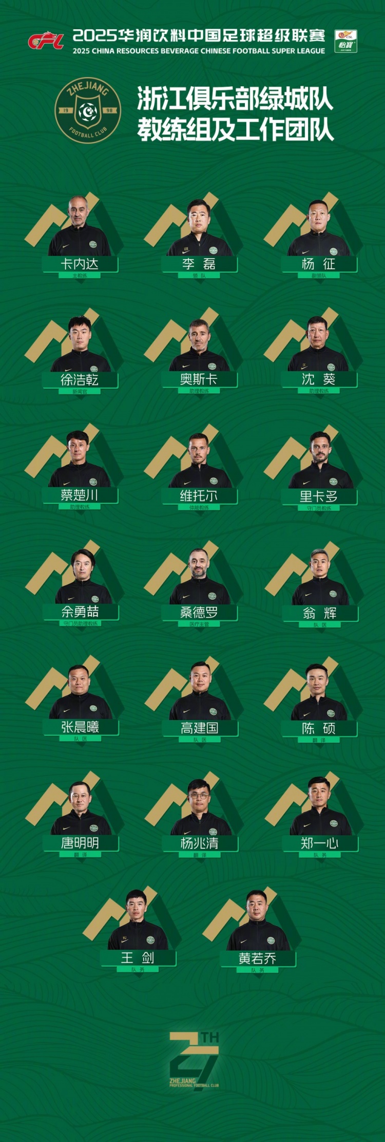 浙江隊(duì)2025賽季一線隊(duì)大名單
