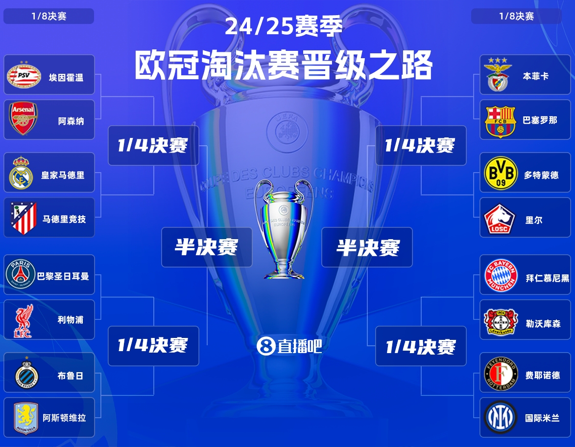 24/25賽季歐冠淘汰賽賽程出爐,1/8決賽首回合將在3月5日凌晨開戰(zhàn)。