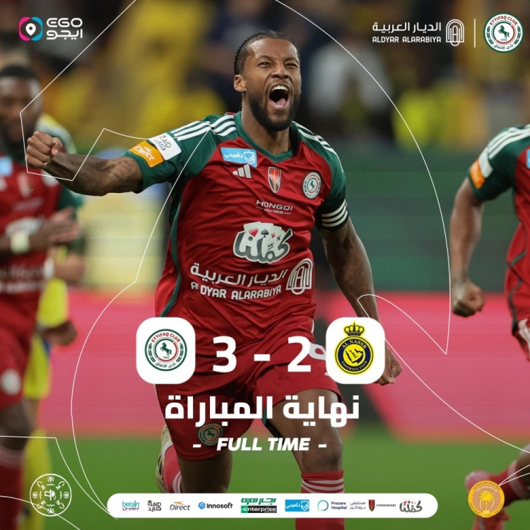 沙特聯(lián)積分榜:勝利五連勝遭終結(jié),先賽落后榜首8分