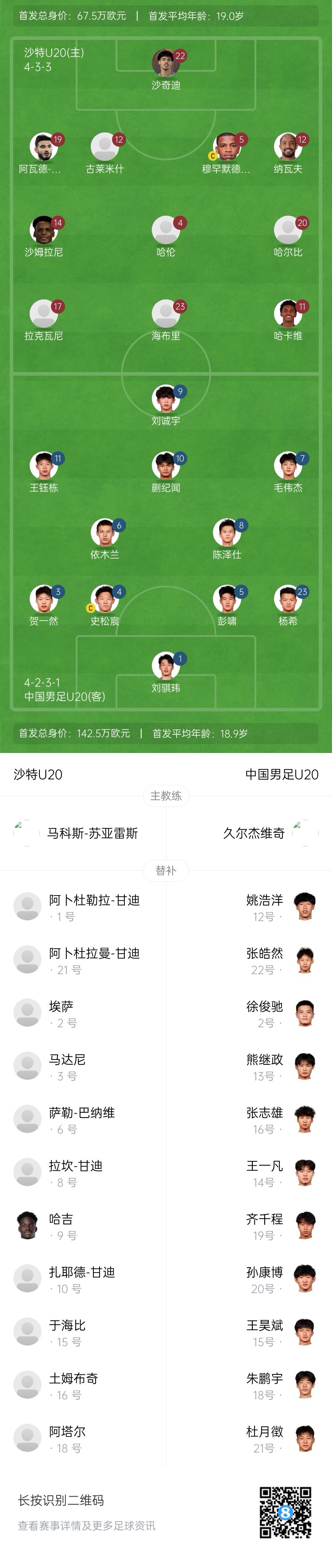 贏球進世青賽!U20中國vs沙特首發(fā):王鈺棟、蒯紀(jì)聞等人均先發(fā)