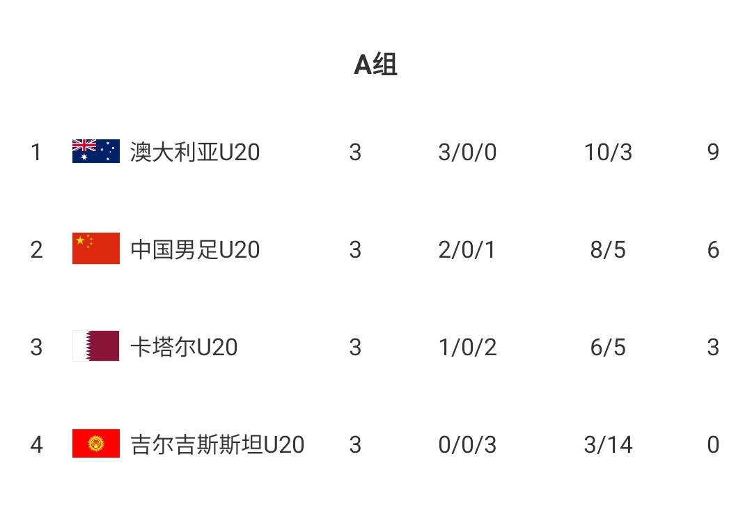 主場作戰(zhàn)的國足列A組第二晉級,小組賽打出了2勝1負的戰(zhàn)績,積分為6分。其中,前兩戰(zhàn)小伙子們表現(xiàn)不俗,輕松戰(zhàn)勝了卡塔爾、吉爾吉斯斯坦,展現(xiàn)了很好的實力。末戰(zhàn)在上半時替補輪換、下半時才安排主力的情況下1-2遺憾輸給澳洲,屈居次席。凈勝球方面達到了+3,進8球丟5球的成績是不錯的。
