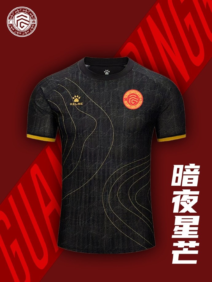 第二客場(chǎng)球衣源自廣西黑衣壯的族群標(biāo)記,黑色代表著力量與神秘,亦預(yù)示著球隊(duì)在新賽季中將如黑夜中的捕手,以冷靜的頭腦和堅(jiān)強(qiáng)的意志,在關(guān)鍵時(shí)刻給予對(duì)手致命一擊。胸前的金色線條既是喀斯特奇峰的暗號(hào),亦是龍脊梯田優(yōu)美曲線的化身,暗色底紋如球網(wǎng)交織,象征著球隊(duì)在纏斗中迸發(fā)出無(wú)窮的力量,無(wú)論何時(shí)何地,都將以?shī)^力一搏的姿態(tài)奪取最終的勝利!