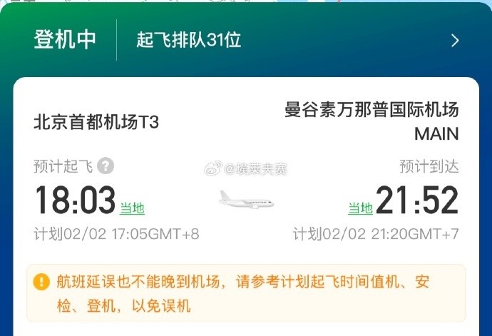 昨天晚點(diǎn)后返航!博主:泰囧,今天國安飛泰國的班機(jī)繼續(xù)晚點(diǎn)