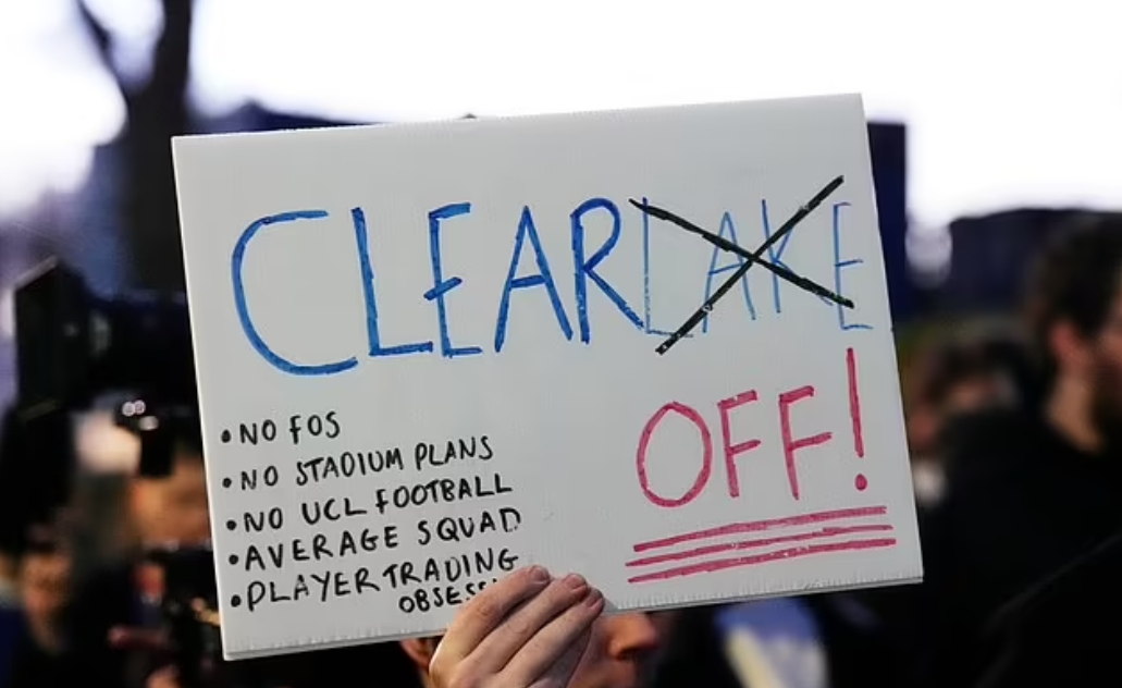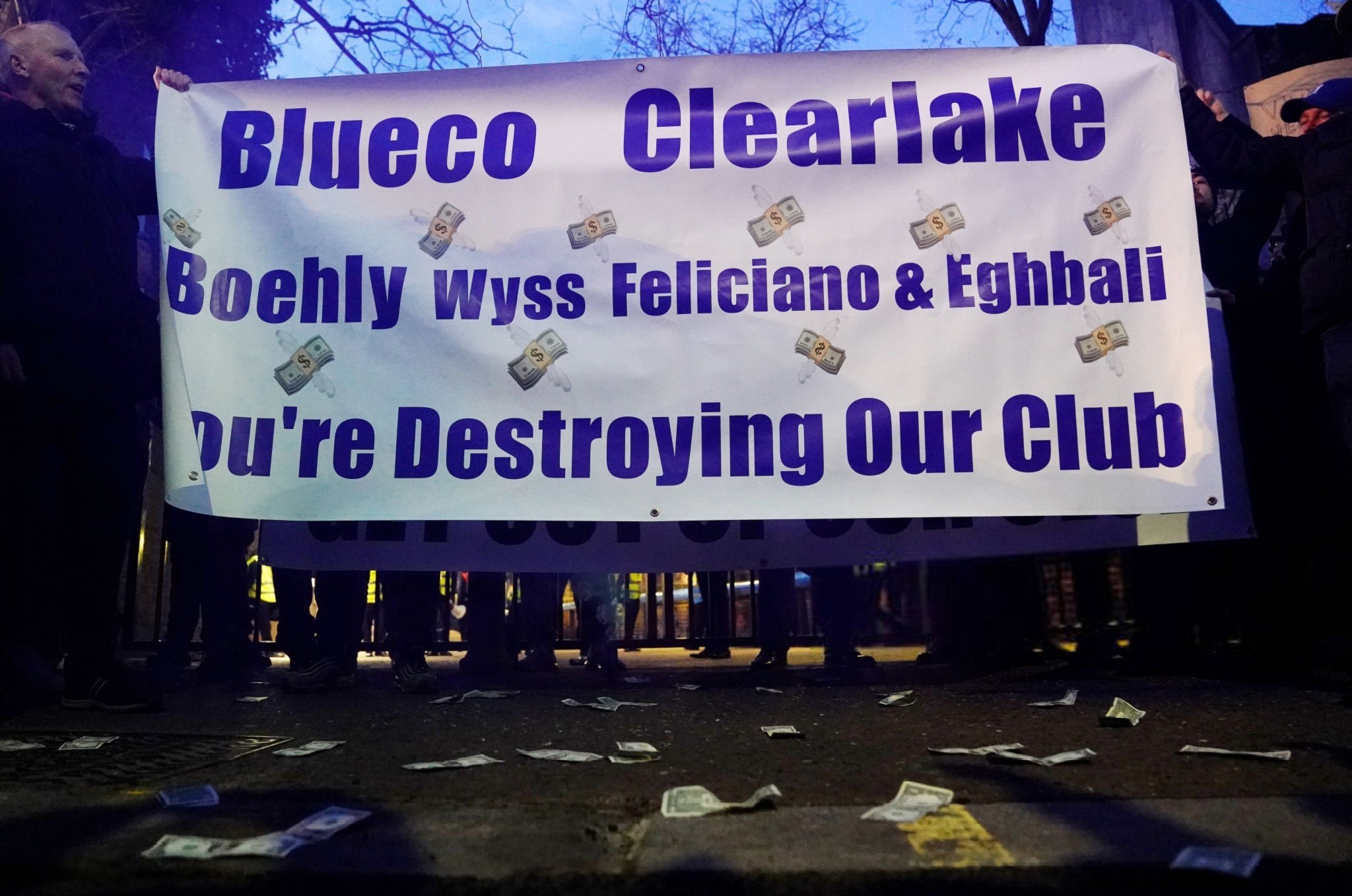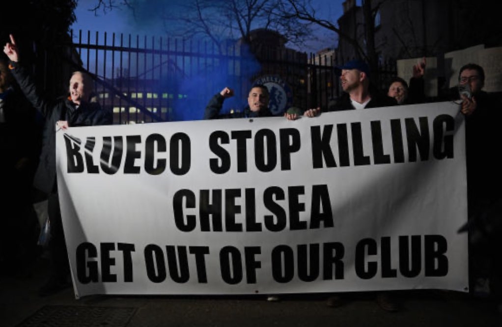 在比賽開(kāi)始前,數(shù)百名切爾西球迷在斯坦福橋場(chǎng)外舉行了抗議活動(dòng),對(duì)切爾西老板伯利和清湖資本。