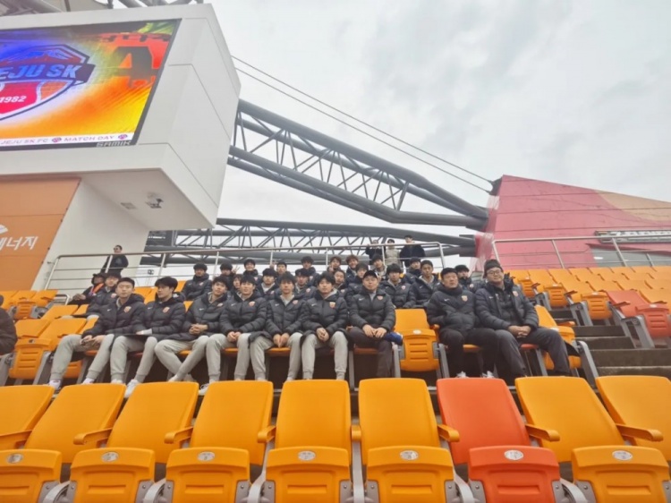此外,為了讓隊員們更好地了解當(dāng)?shù)氐淖闱蛭幕沧鳛榕τ?xùn)練之余的調(diào)劑,教練組還在冬訓(xùn)期間組織全隊觀看了K聯(lián)賽濟(jì)州SK對陣首爾的比賽,希望隊員能夠在觀賽的過程中有所收獲。